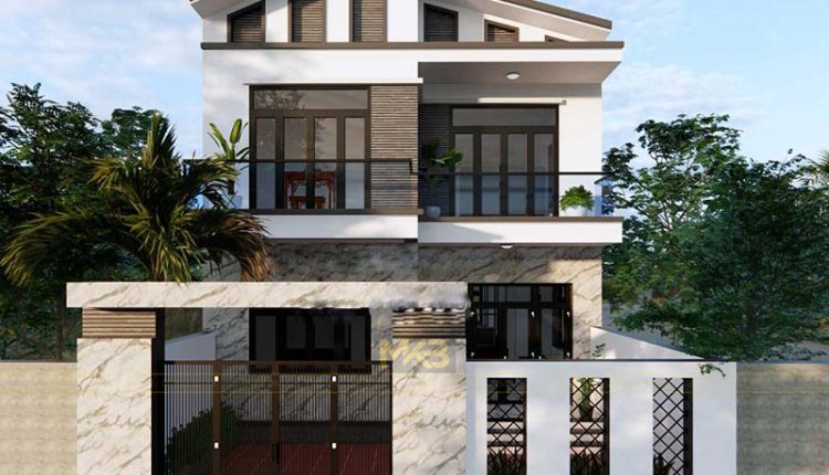 MẪU NHÀ CHỮ L 2 TẦNG MÁI LỆCH